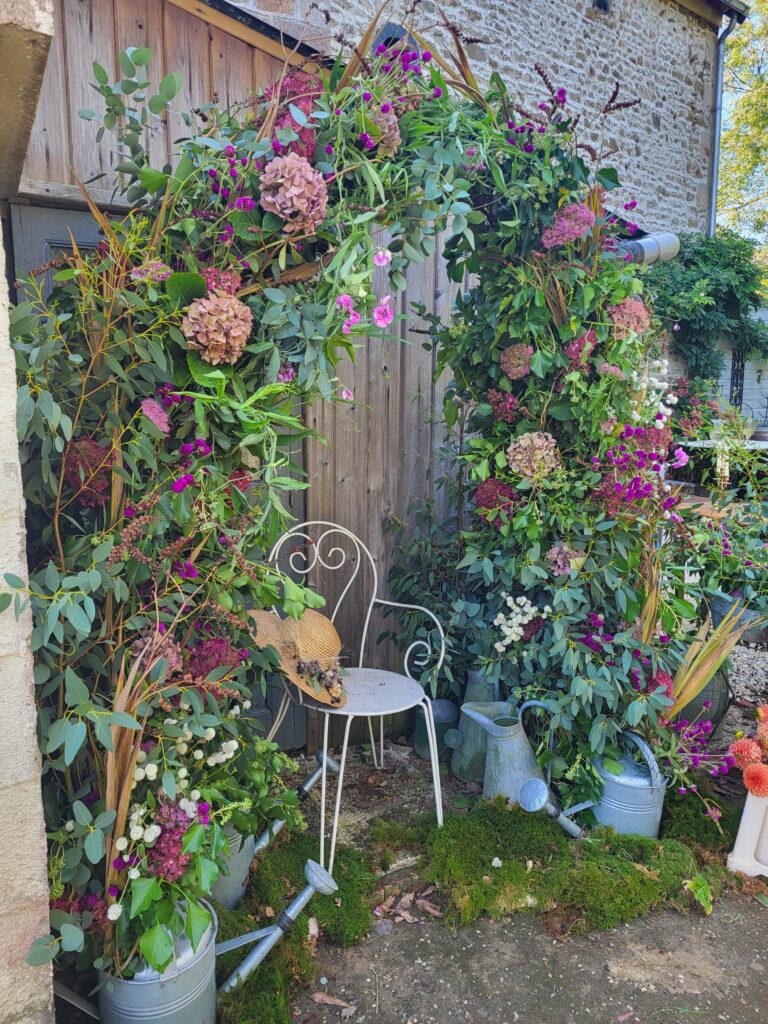 Retour sur les visites guidées qui a eu lieu le dimanche sur notre ferme florale et la décoration du Moulin de Monthoudoux avec une arche éco responsable (réalisé sans mousse florale)