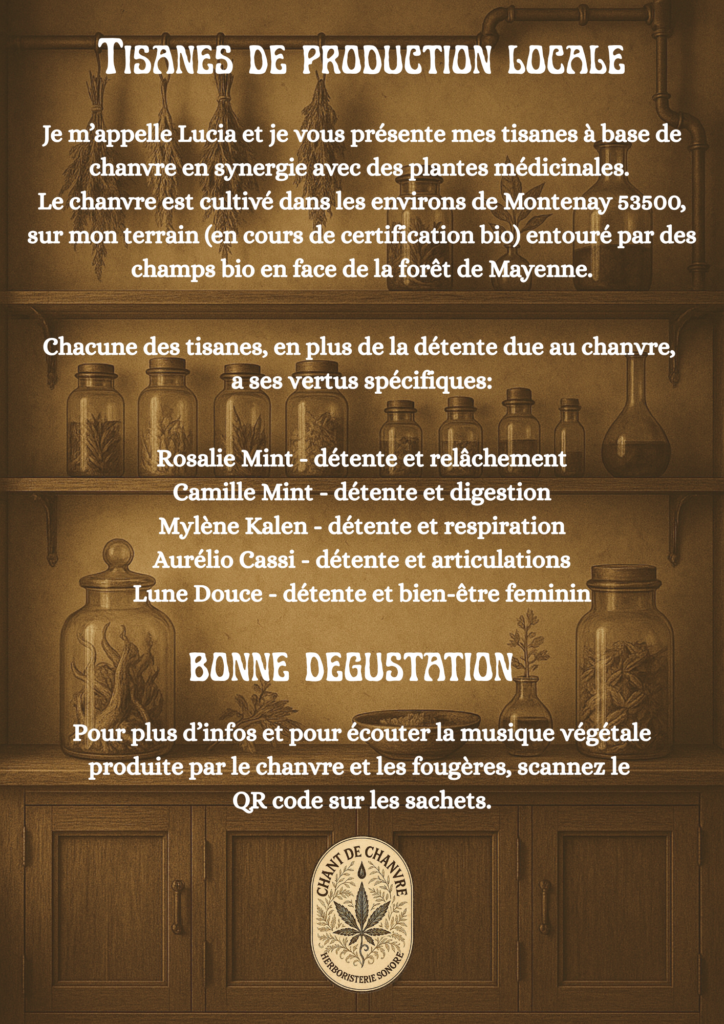 Lucia, vous présente ses tisanes à base de chanvre en synergie avec des plantes médicinales.