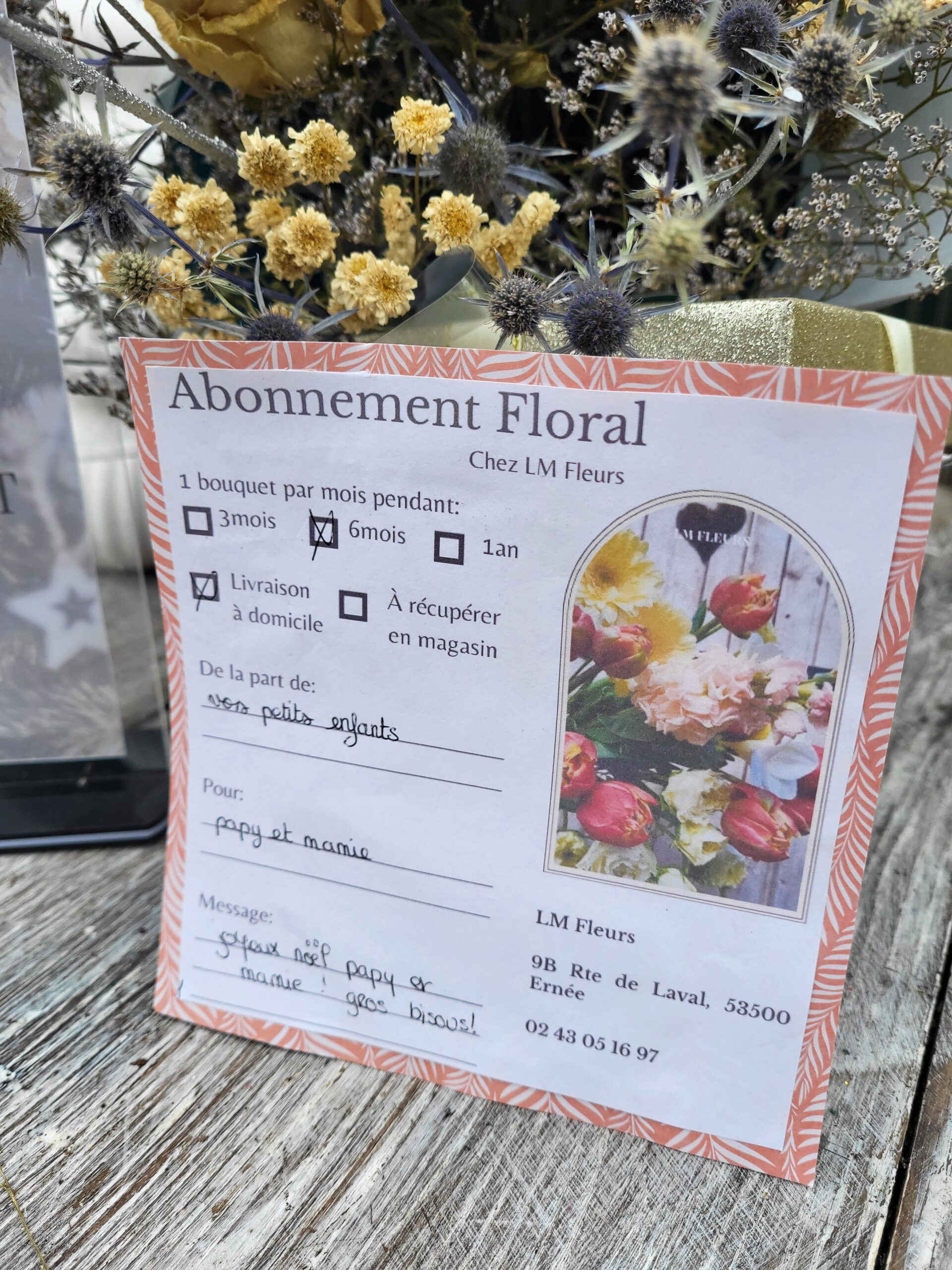 6 bouquets de 25€ livré 1fois par mois; soit 150€
