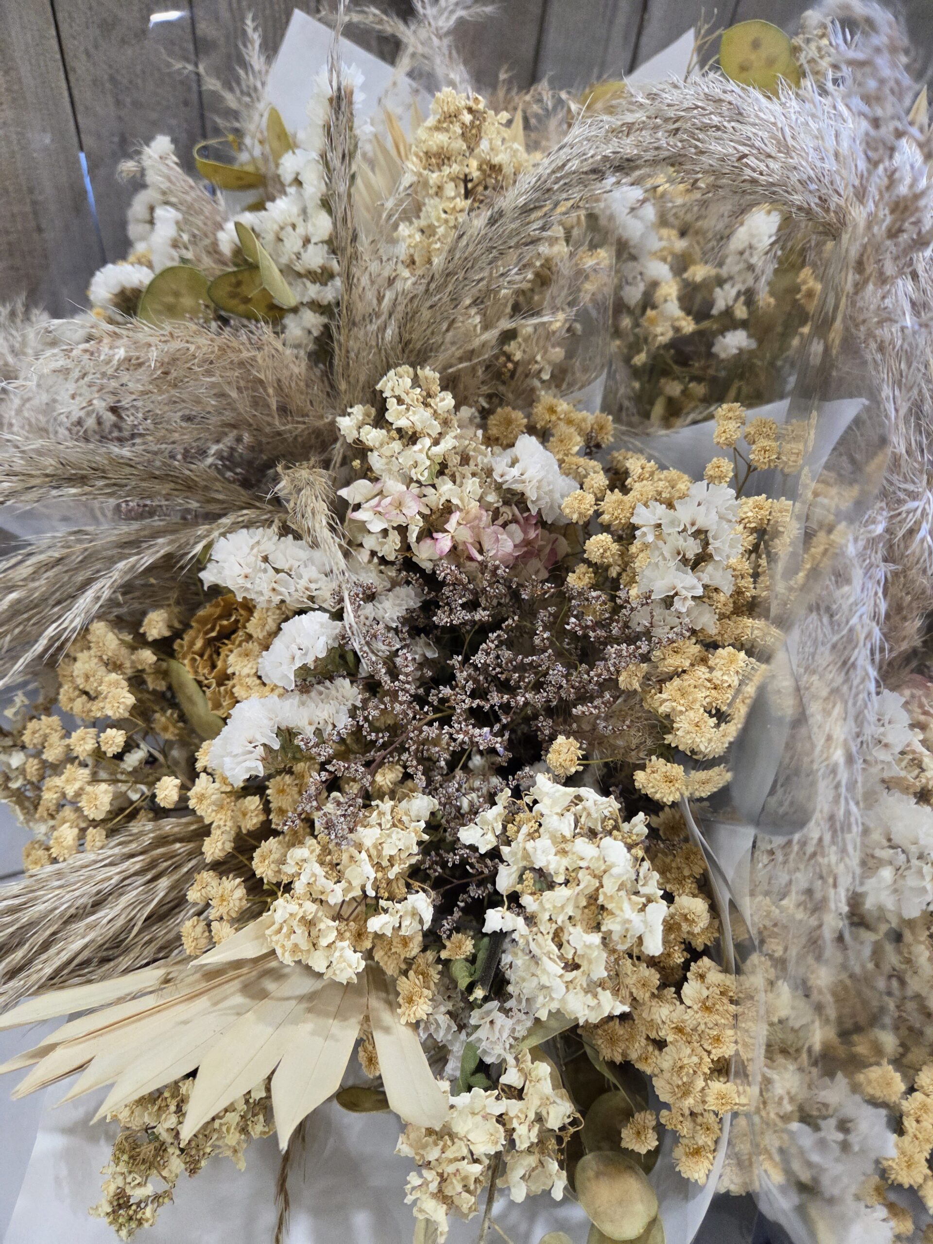 Un magnifique bouquet de fleurs séchées Made In Montenay, dans les tons crème et blanc.