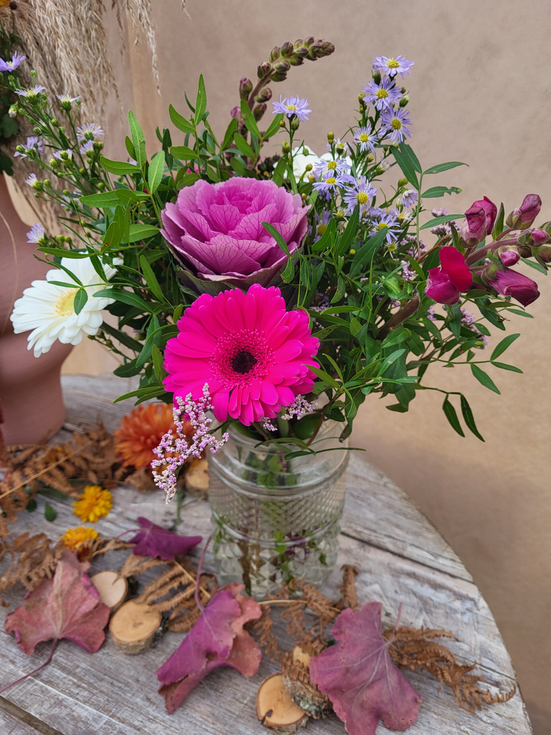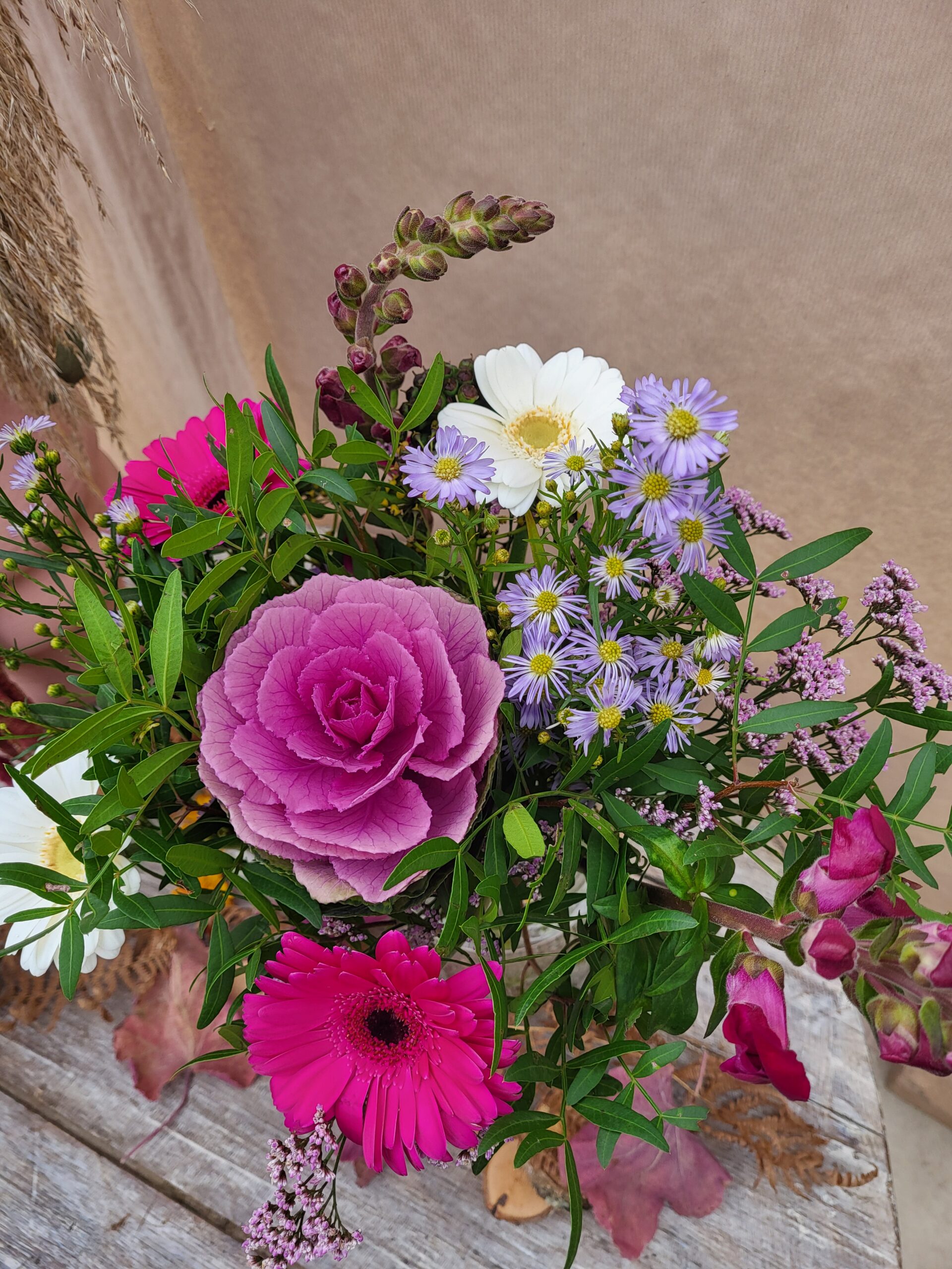 Bouquet de saison avec ces fleurs de couleurs violine.