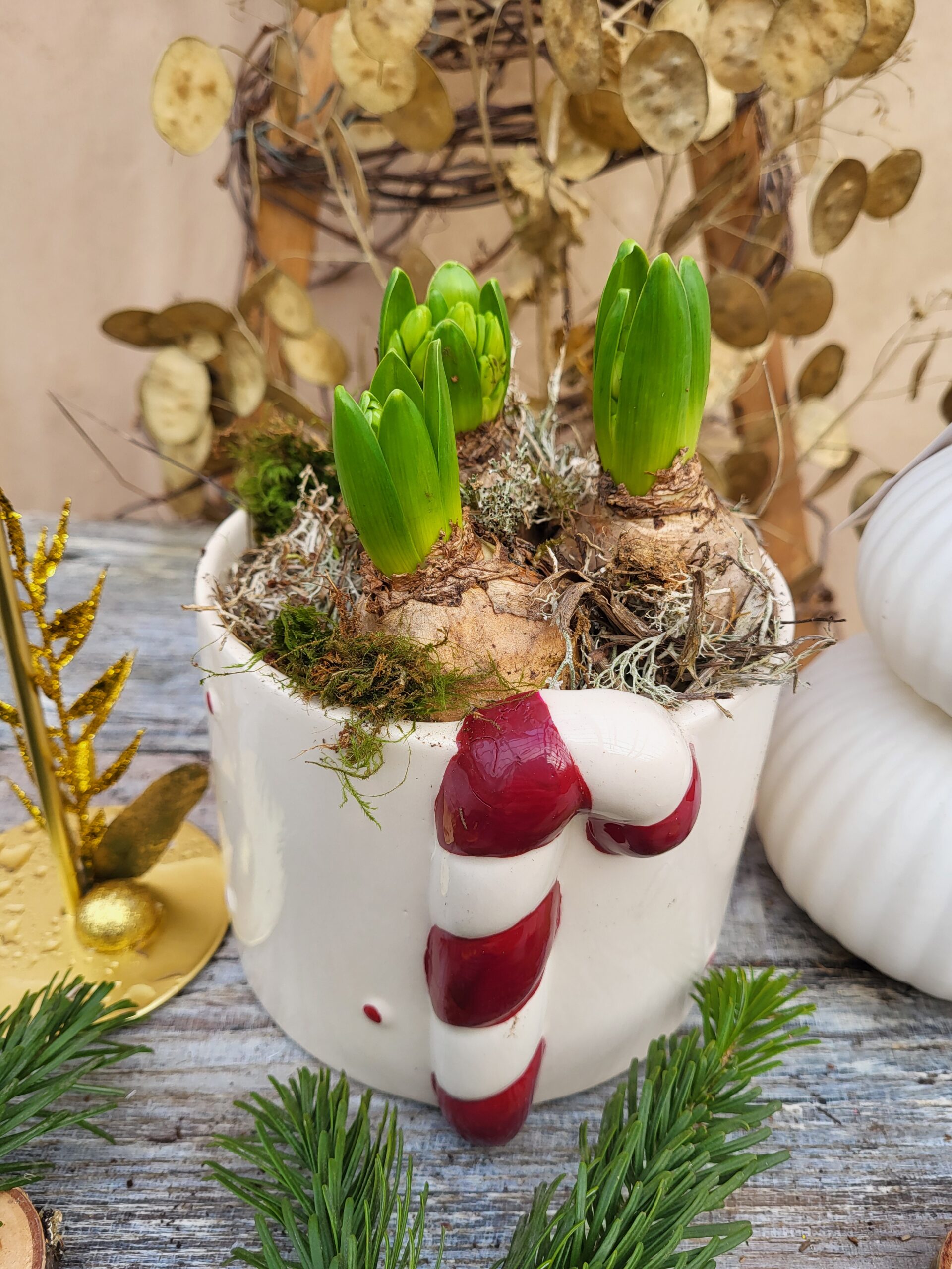 Jacynthes blanche avec son cache pot en céramique thème noël